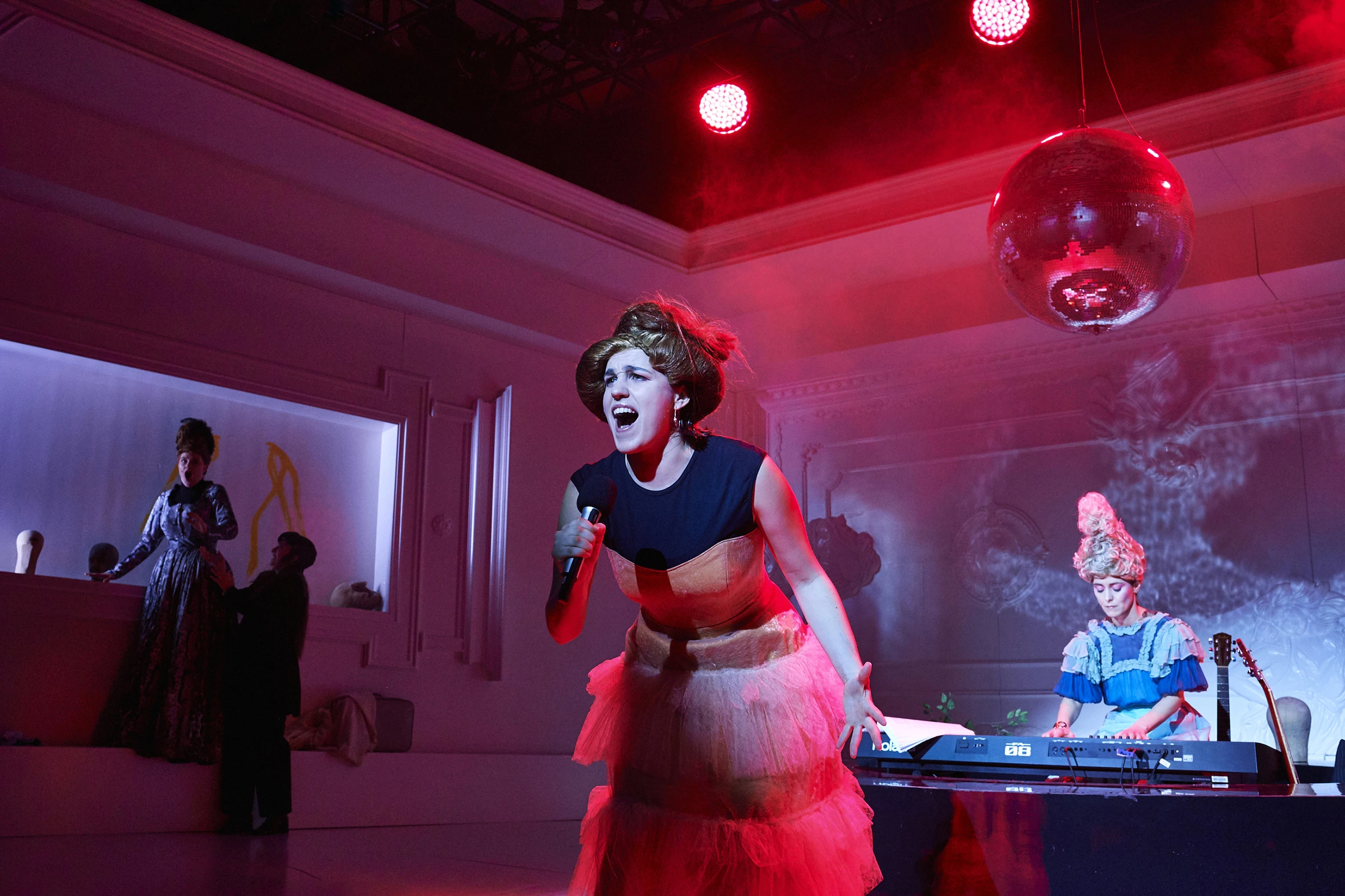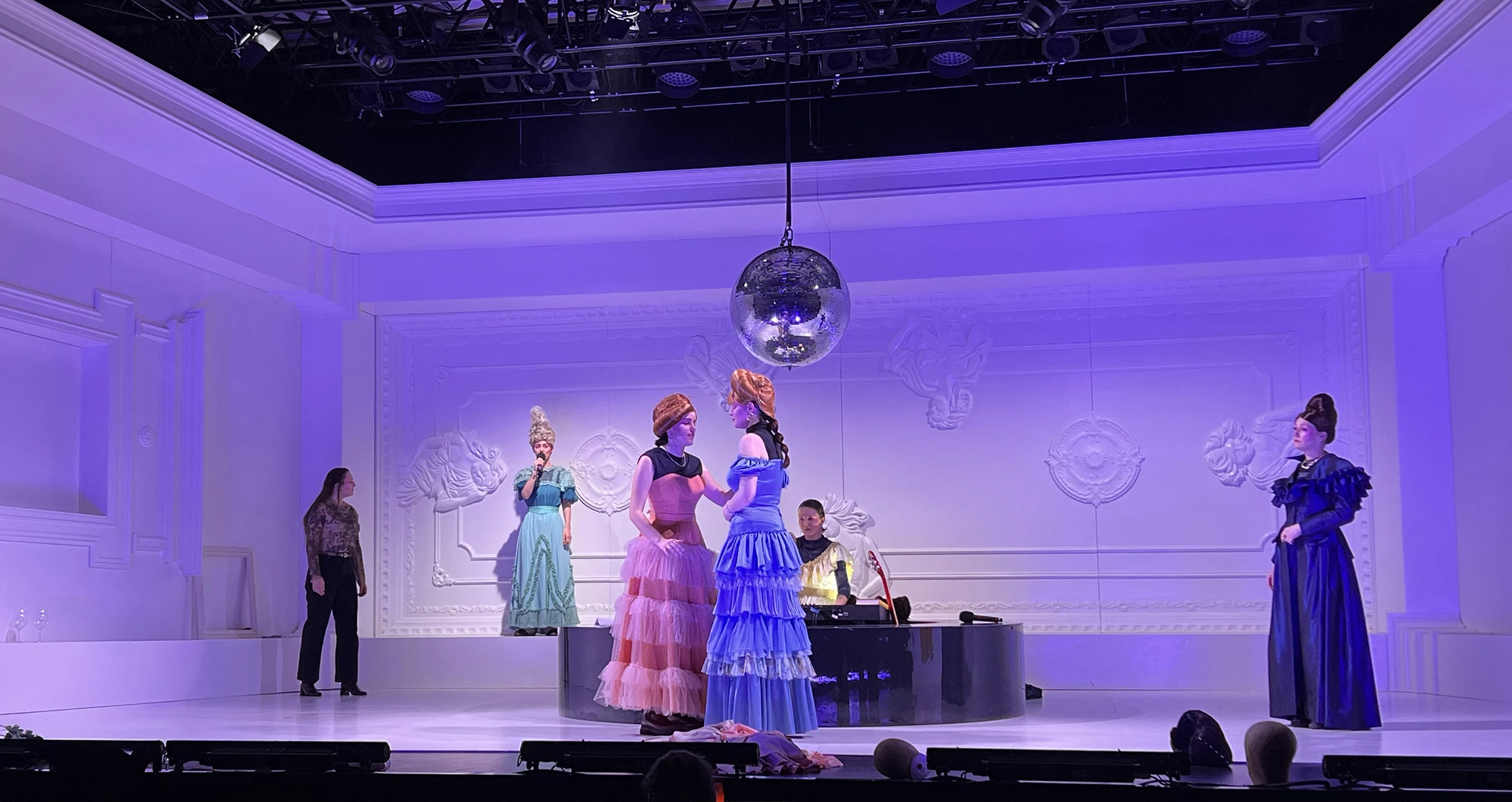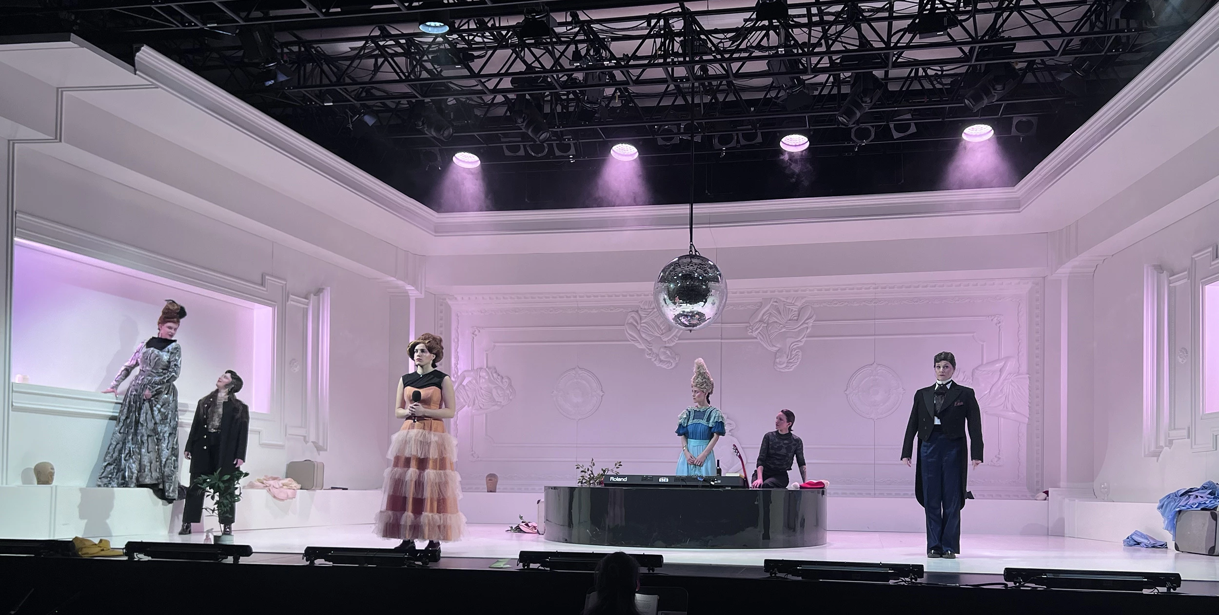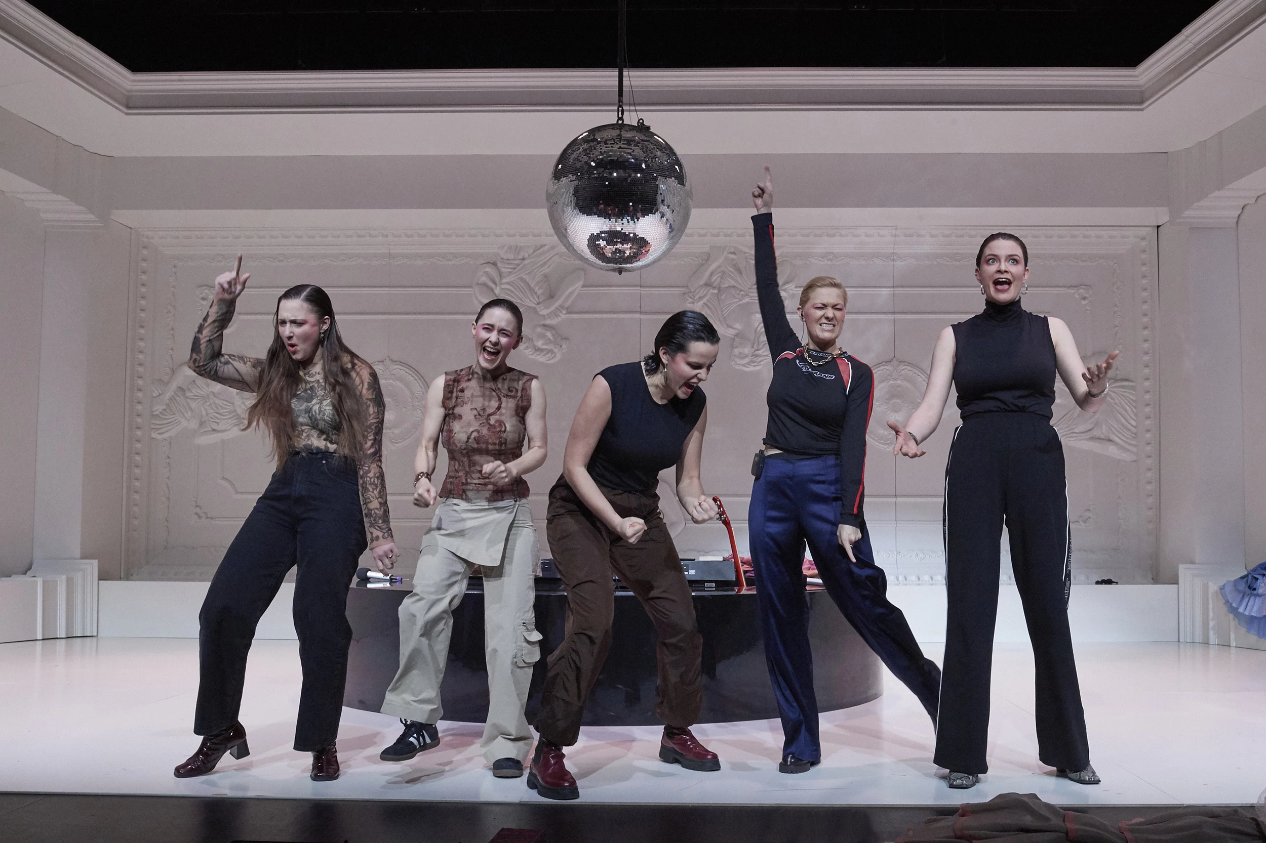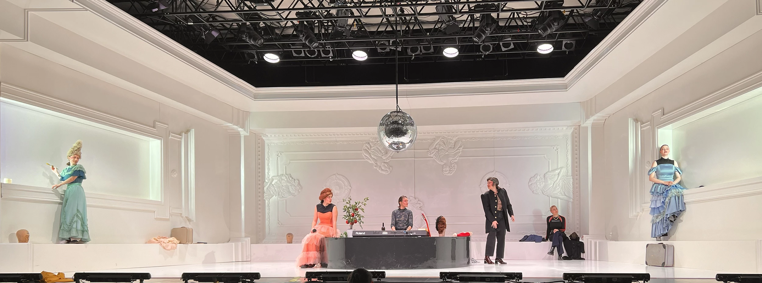 Play by: Isobel McArthur, based on Jane Austen // Direction: Daniel Foerster // Musical Direction: Sarah Kremietz // Stage Design: Jan Hendrik Neidert // Costume Design: Lise Kruse // Light: Wanja Ostrower // Dramaturgy: Maxi Ratzkowski // Photos: Tom Neumeier Leather