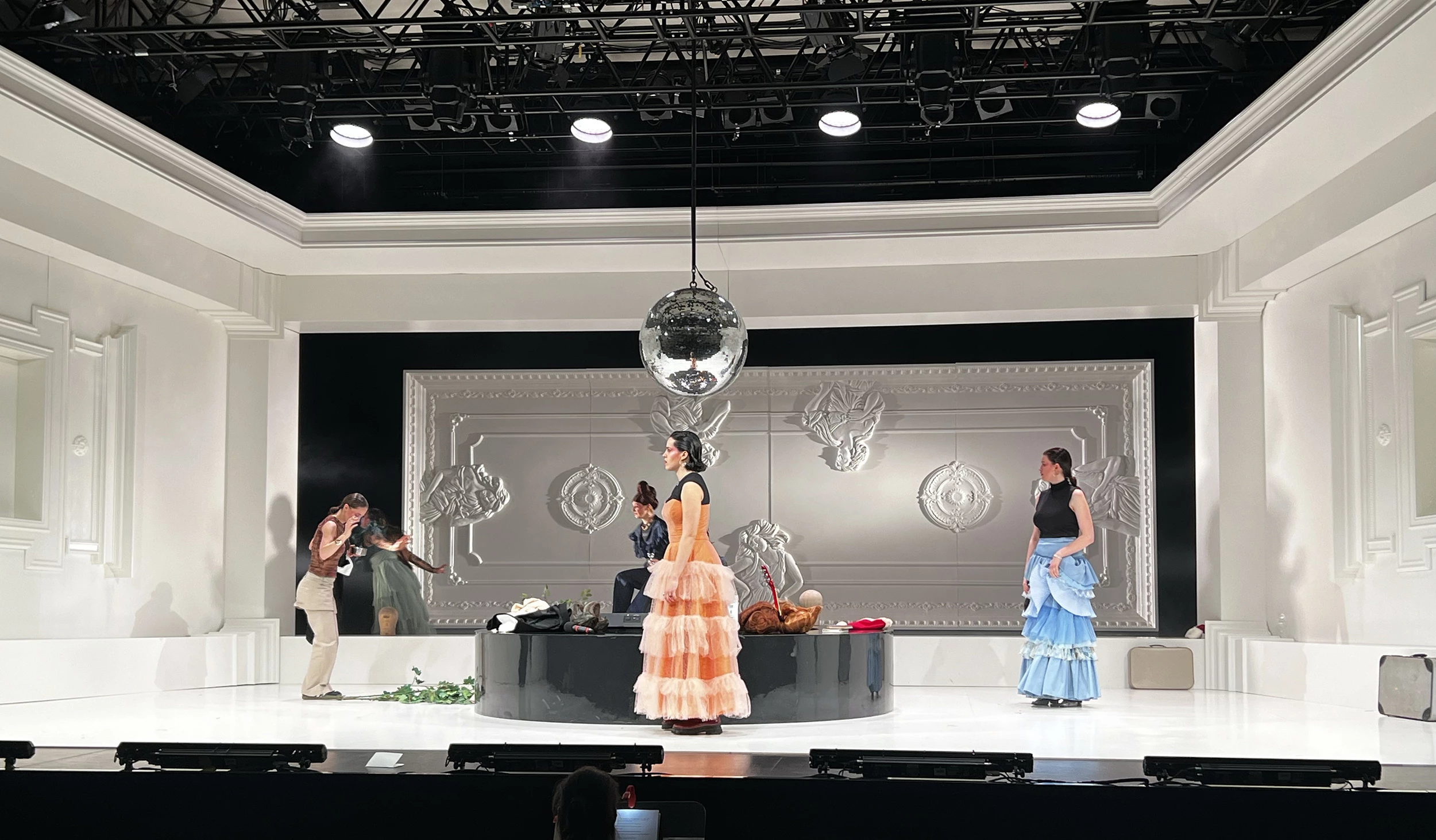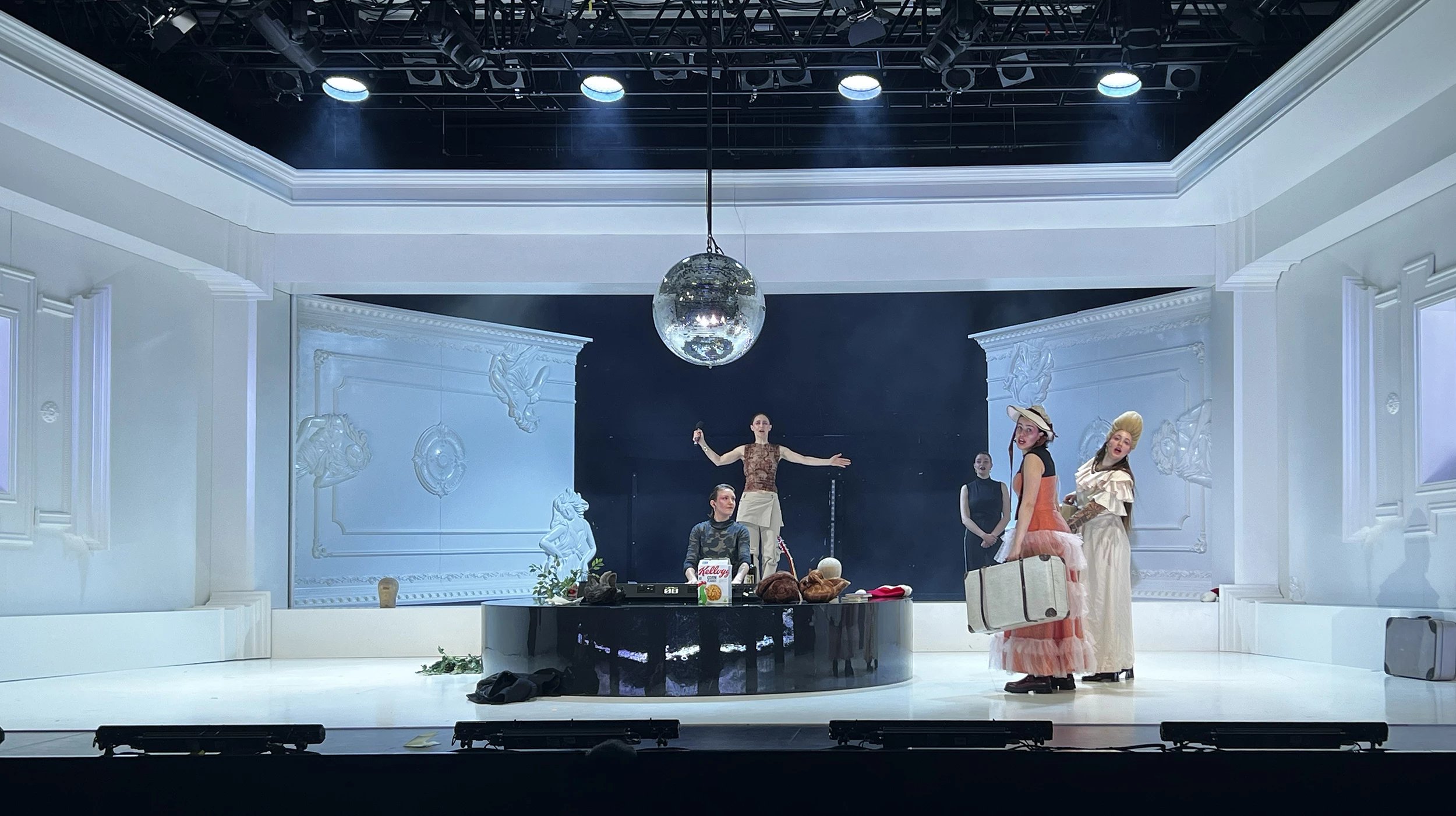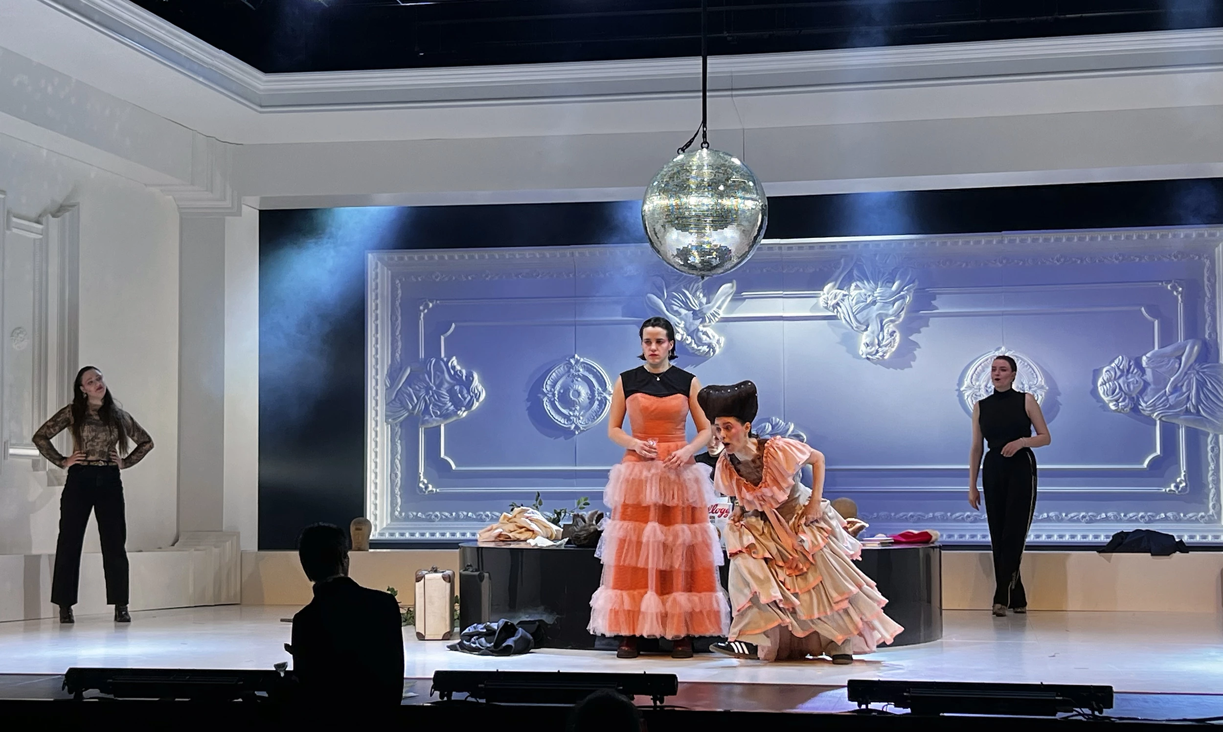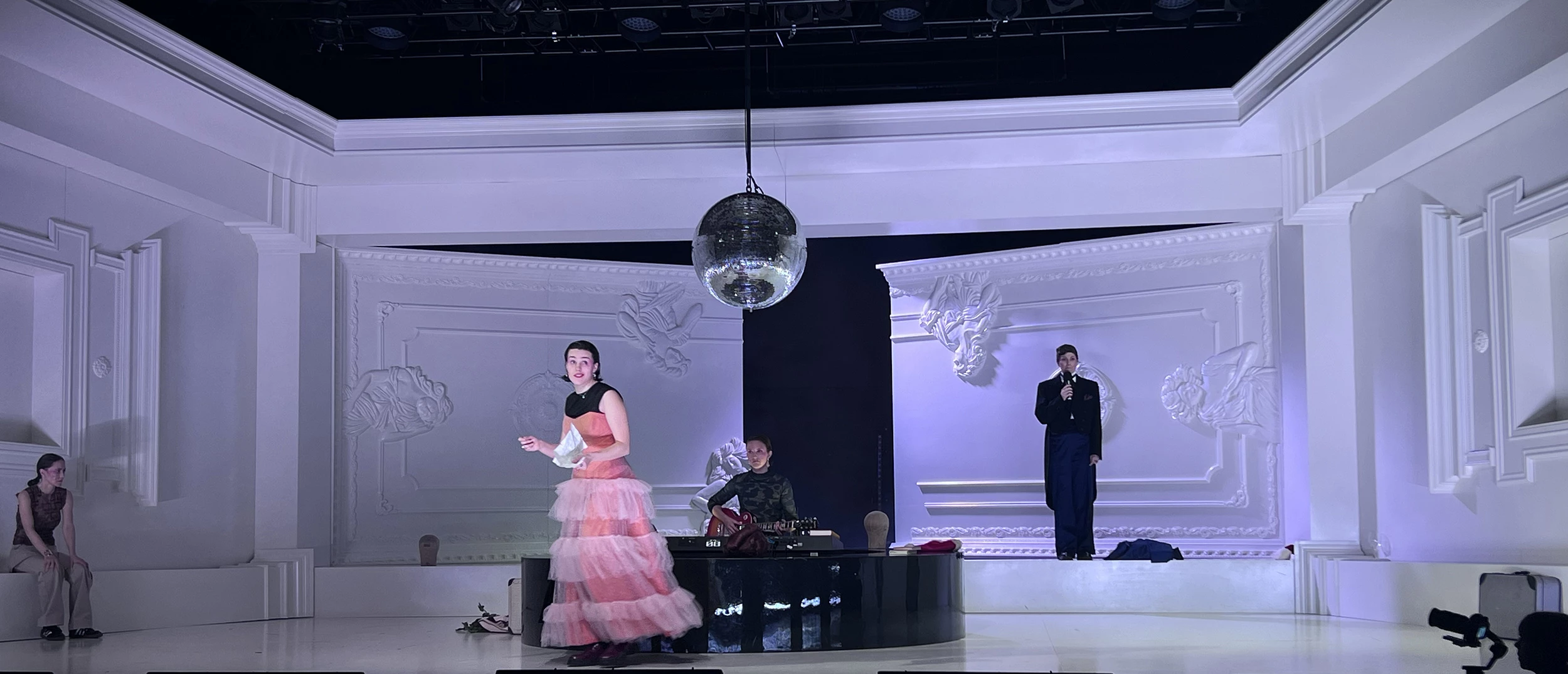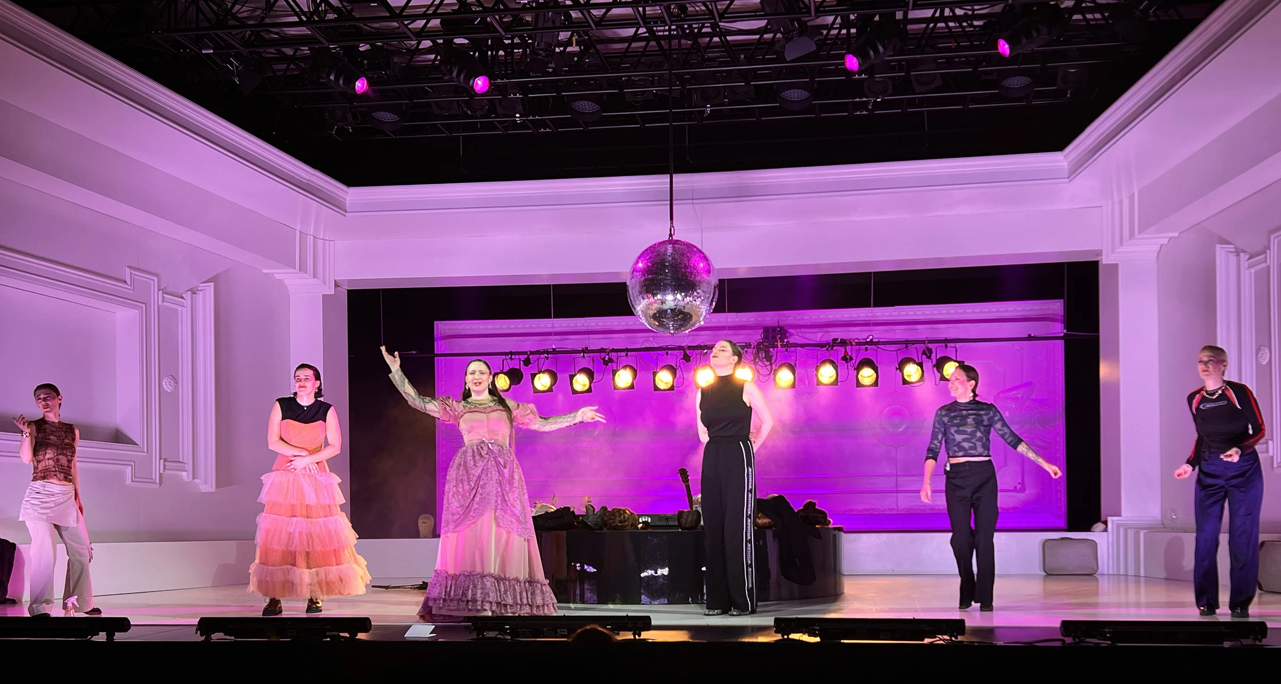 Play by: Isobel McArthur, based on Jane Austen // Direction: Daniel Foerster // Musical Direction: Sarah Kremietz // Stage Design: Jan Hendrik Neidert // Costume Design: Lise Kruse // Light: Wanja Ostrower // Dramaturgy: Maxi Ratzkowski // Photos: Tom Neumeier Leather